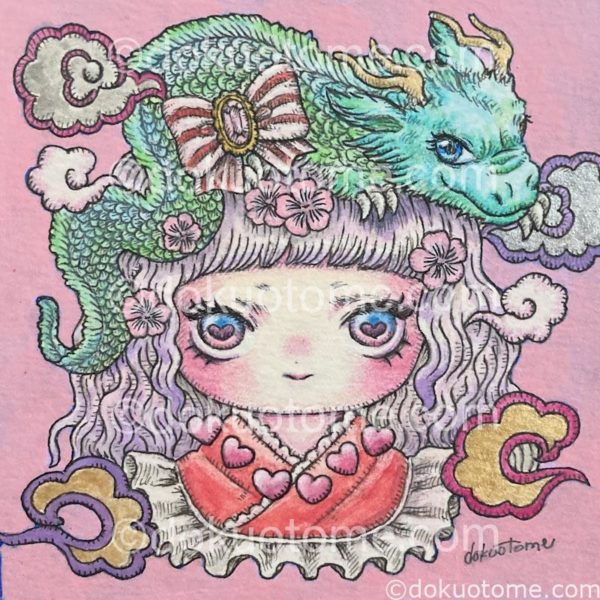baby-dragon-dokuotome-pink drawing pen acrylic paint 2024/02