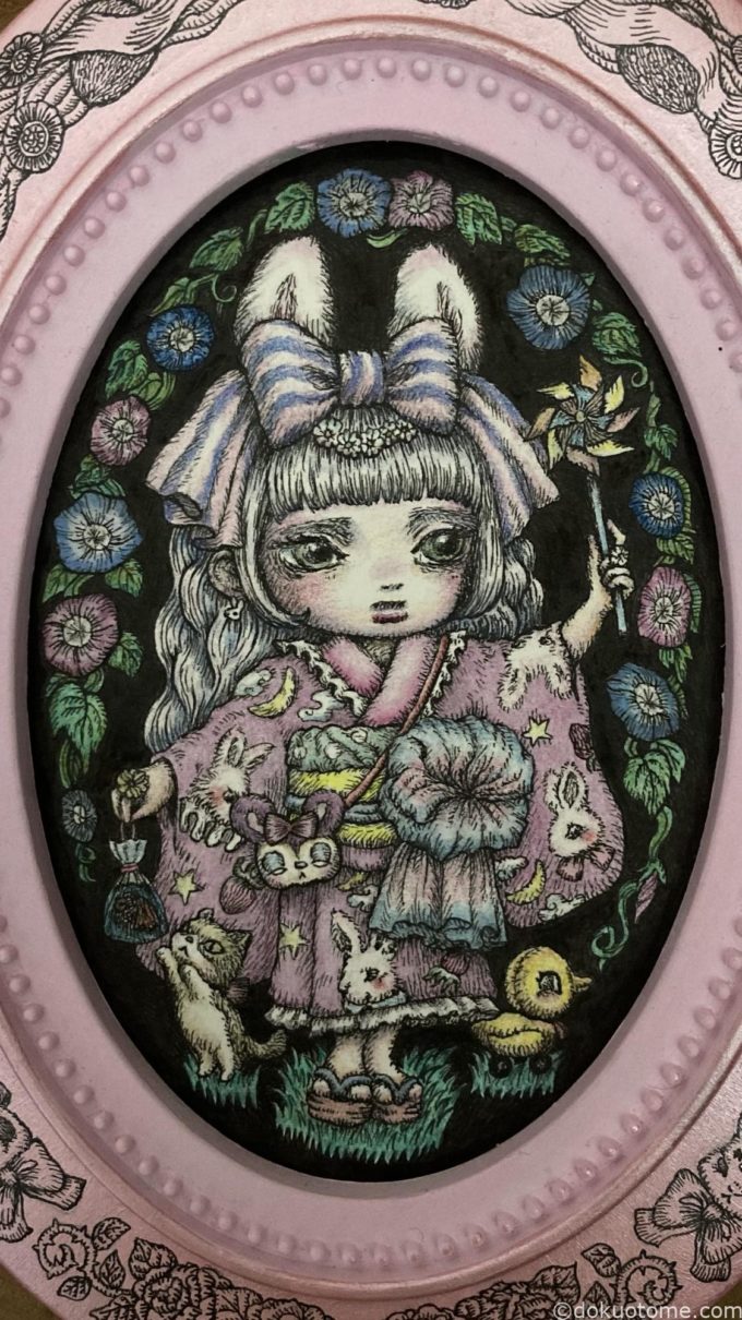 目ヂカラ強めのどくおとめをシリーズにイラストを描いています。近年は、企画展、デザインフェスタ、個展にて手描きイラストを展示販売しております。